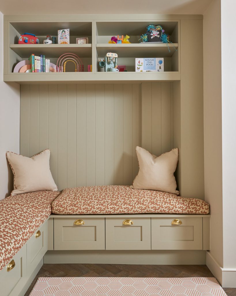 By combining seating with concealed storage beneath, toys, books and blankets can be neatly tucked away, helping to maintain a calm, uncluttered environment, even in busy family spaces.
