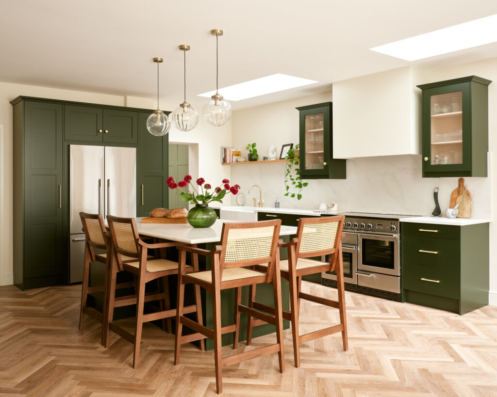 When discussing colour in the kitchen, it is rarely just about the cabinetry itself. Clients are increasingly thinking about how the kitchen sits within the wider context of the home, how it works alongside flooring, wall finishes, light, and adjoining spaces.