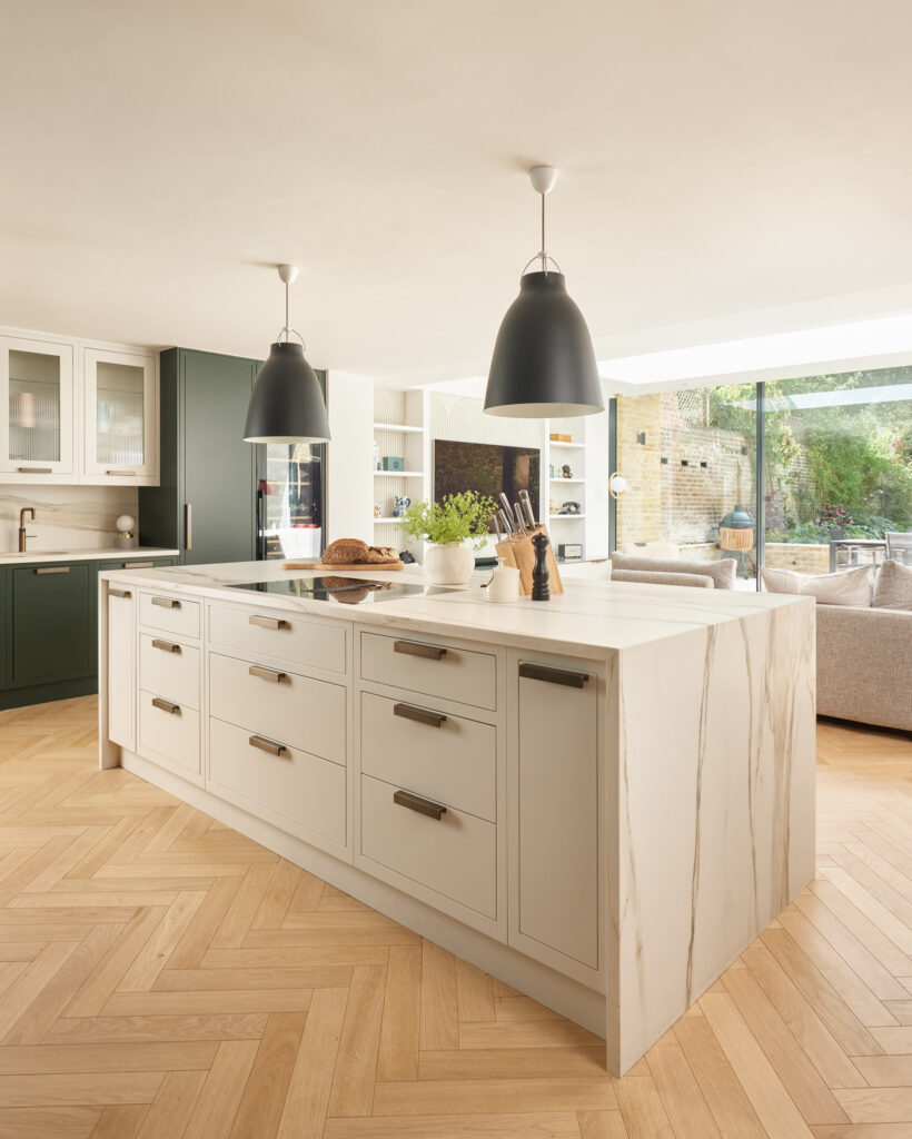 Kitchen islands remain central to this shift. More than a functional addition, they have become a place to gather, somewhere to cook, talk, entertain, and spend time together. Alongside this, there is a noticeable investment in appliances that enhance how the kitchen functions day-to-day, from integrated downdraft ventilation within islands to secondary refrigeration such as cooling drawers or wine storage, and specialist cooking features designed for open-plan living.